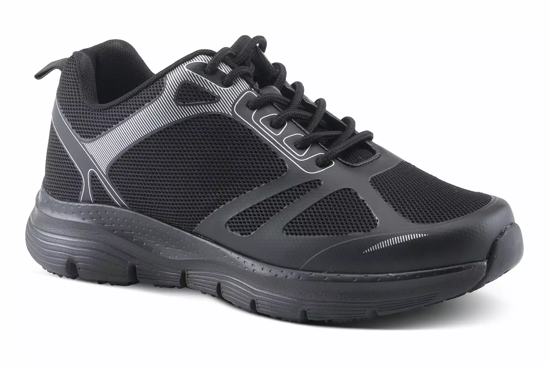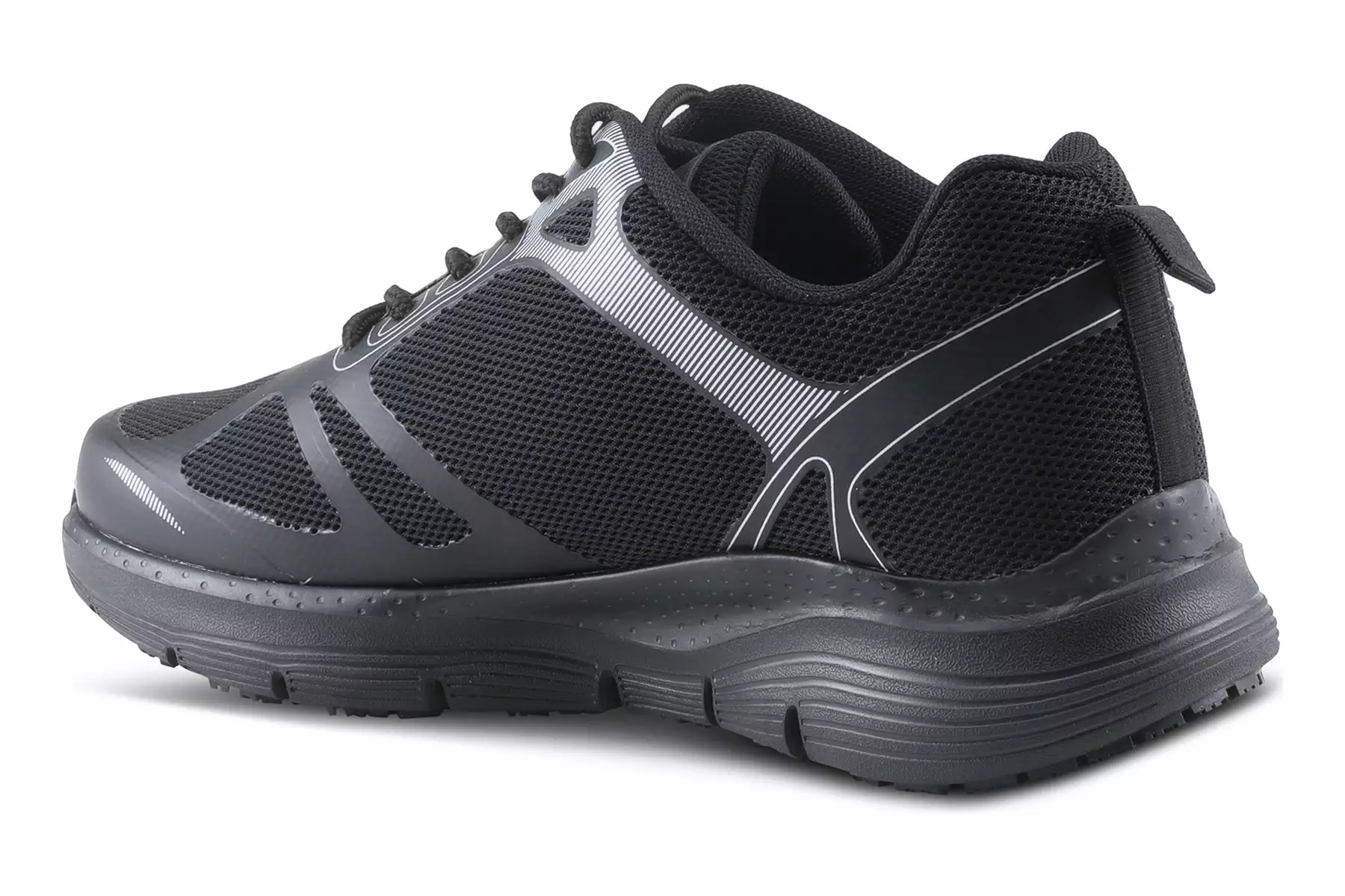 Lightweight and breathable sneaker that provides support, comfort, and safety for all-day wear with an oil and skid-resistant tread.
