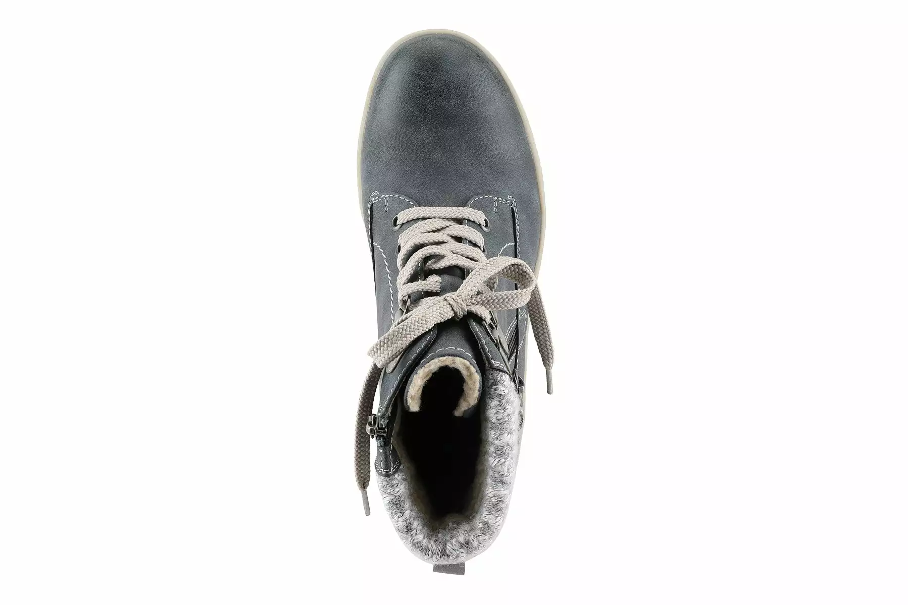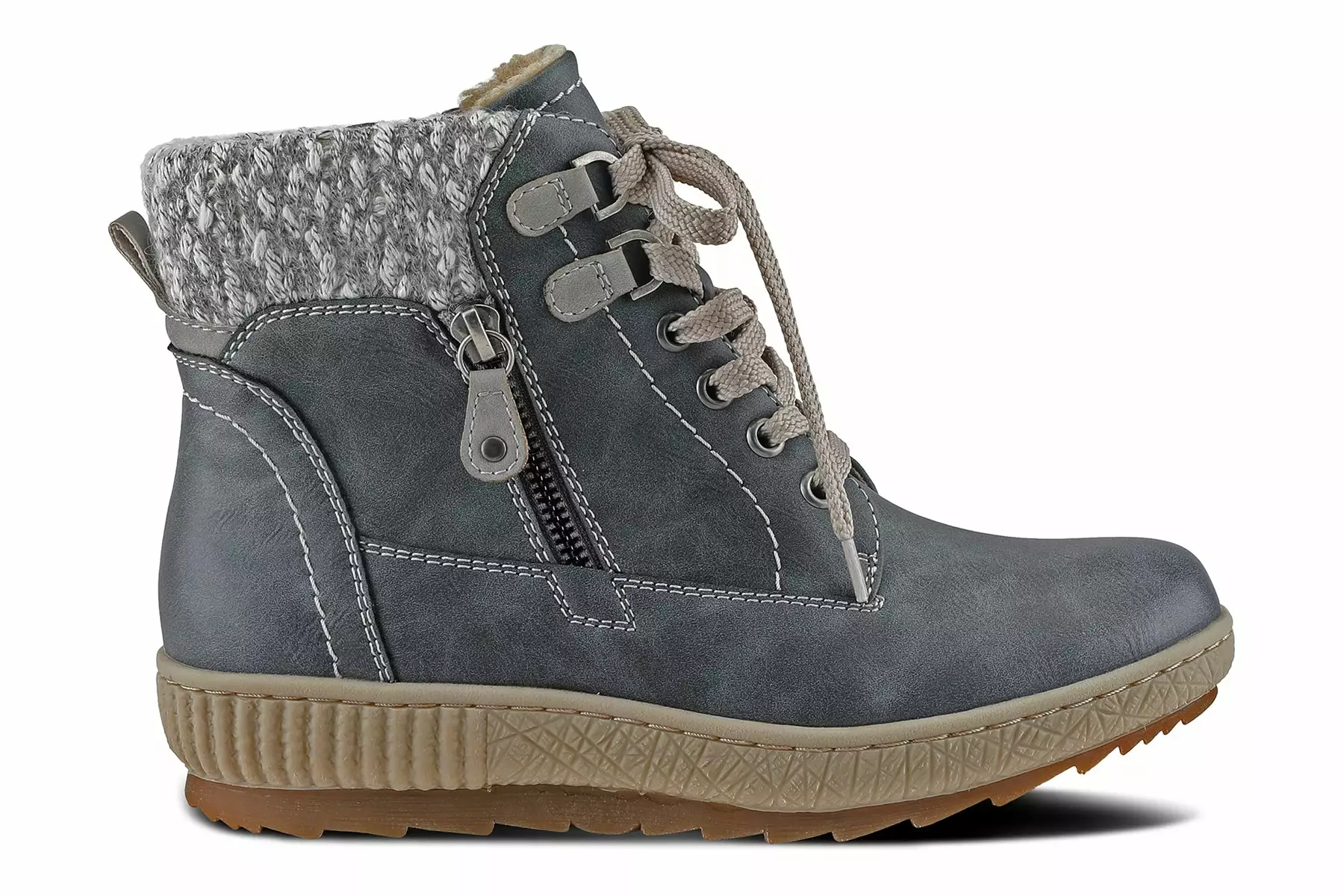 Spring Step KARLENE Relife bootie showcasing a beautiful sweater top, decorative side zipper, and cozy sherpa-like lining on a shock-absorbing, all-day wear outsole.