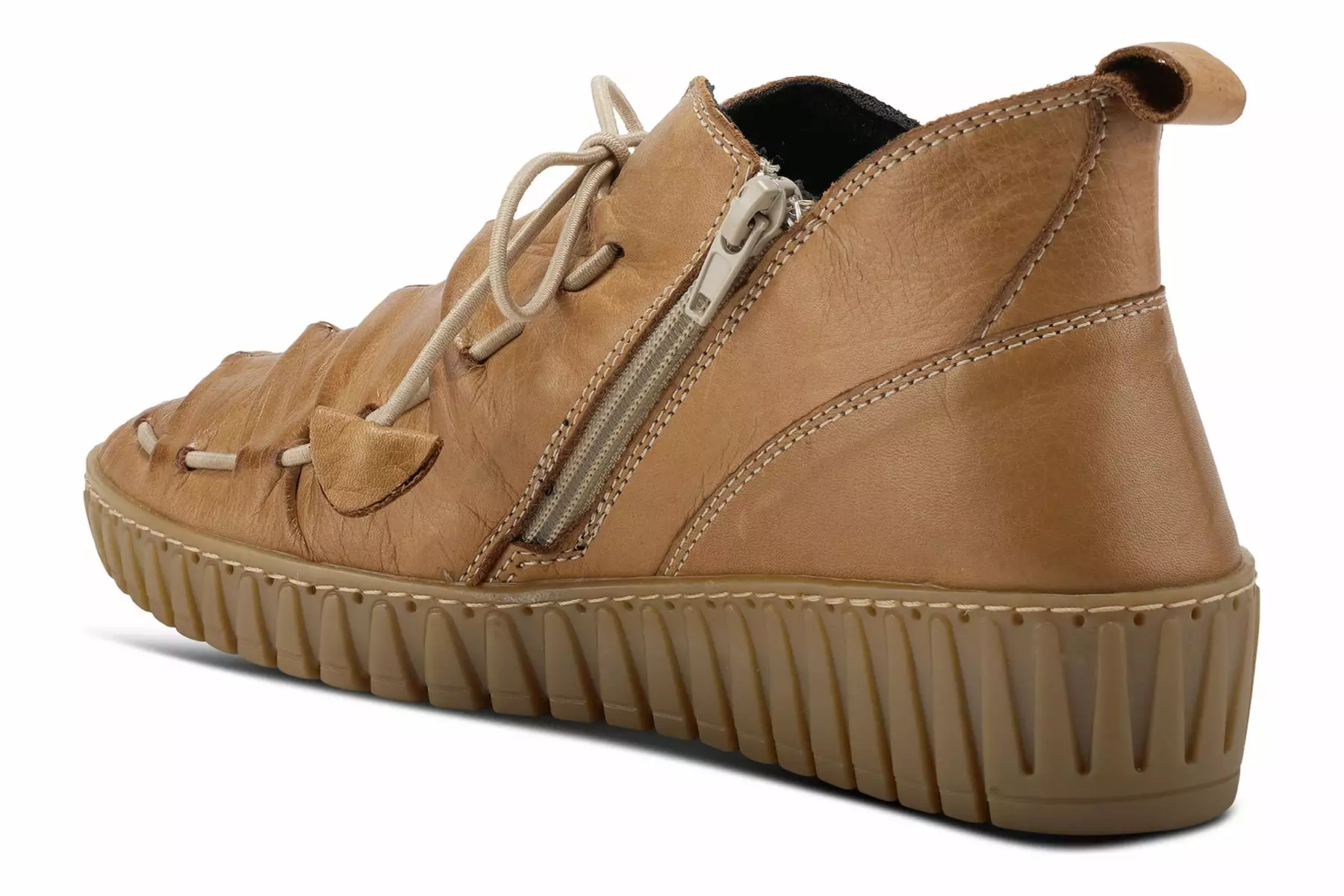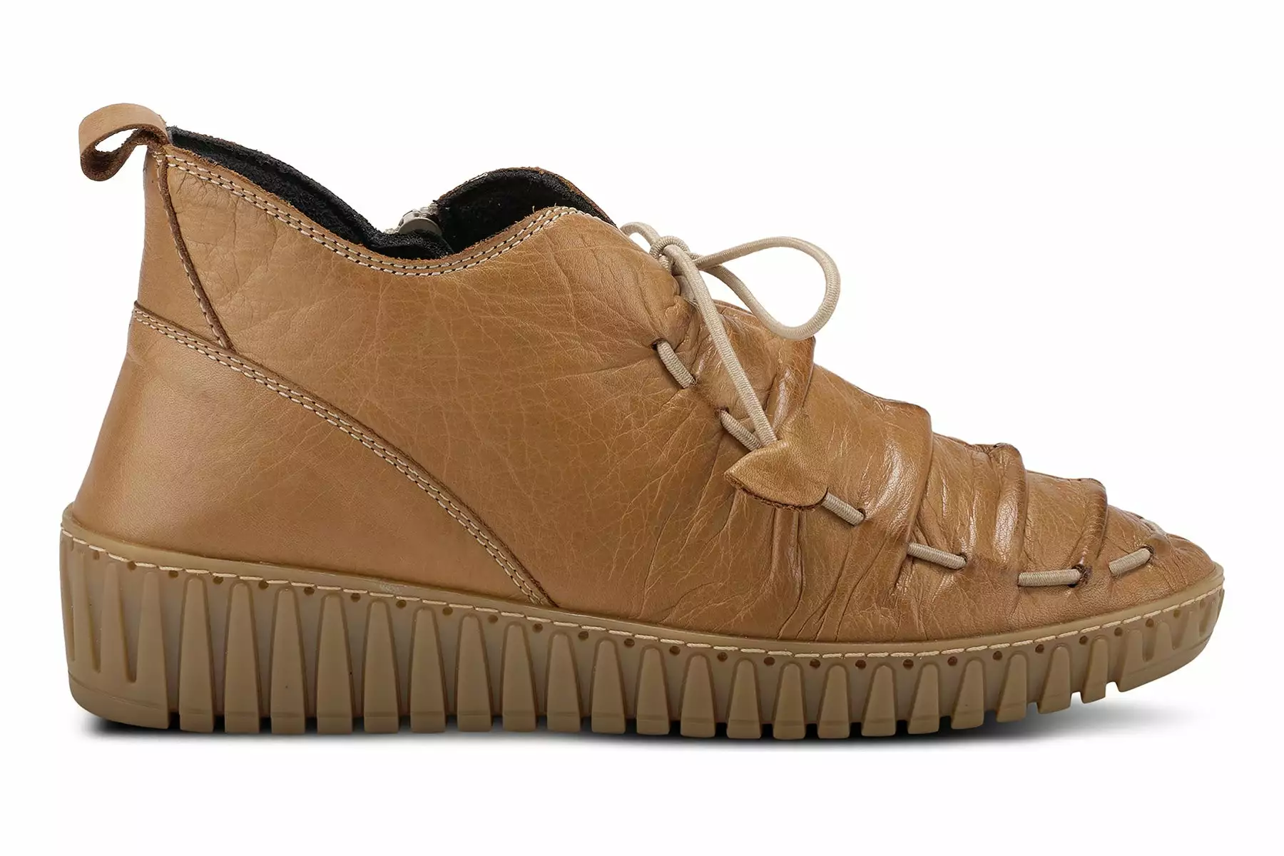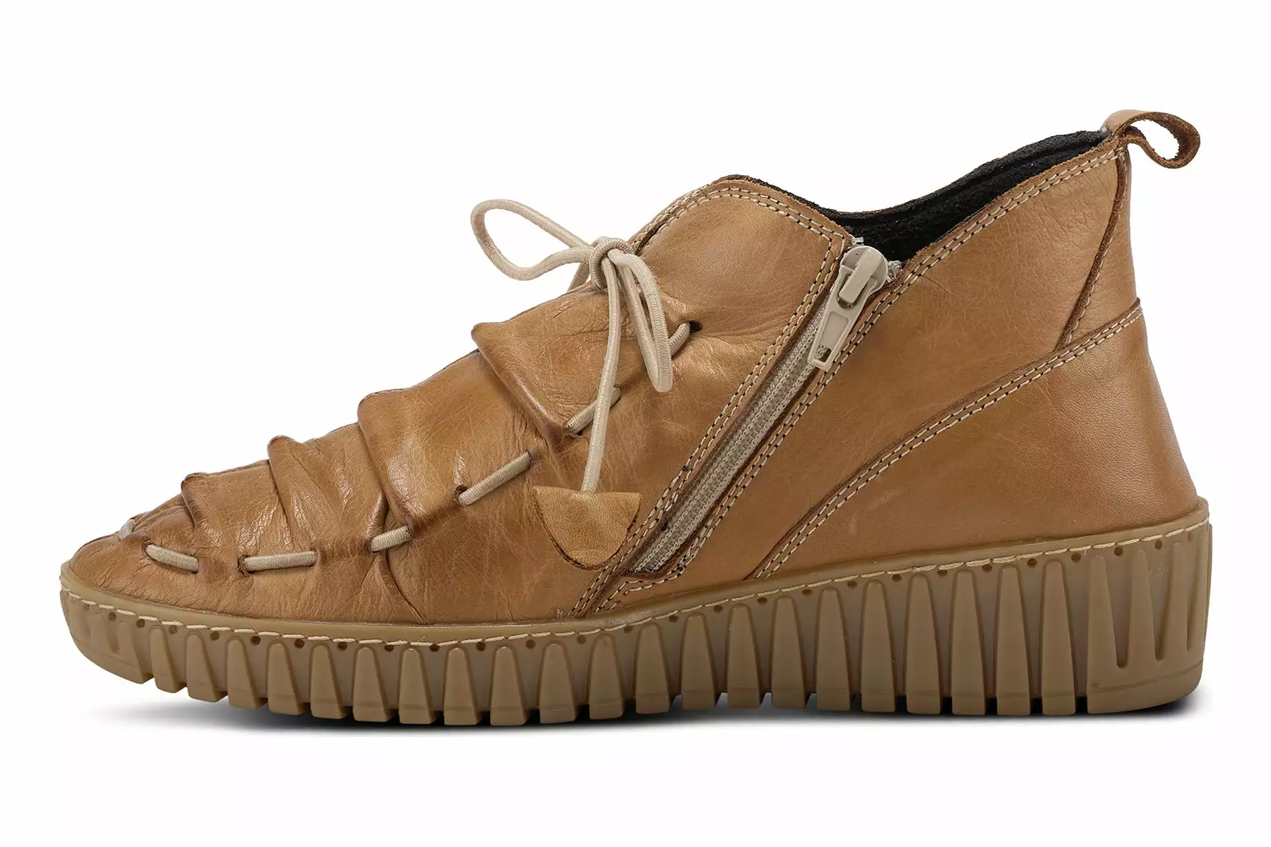 Spring Step Style: Nespea -Mediterranean influenced, high quality premium leather shoe featuring a notched center vamp and an incorporated elastic vamp-tie, easy Pull-on heel tab, and dainty contrast stitchwork all on a strong stitched to sole construction, sculpted, comfort wedge with a flexible forefoot and removable insole.
