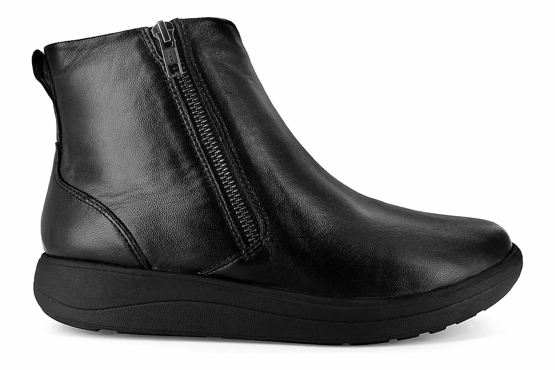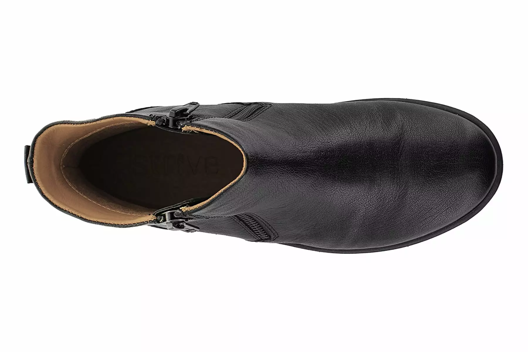 Strive Bamford II is a stylish and cozy ankle boot. These sturdy shoes have leather uppers, zippered side closure, back pull tab and EVA and rubber outsole. A raised round toe silhouette, natural leather sock footbed and microfiber cushioned lining will make these boots essential cold weather footwear.