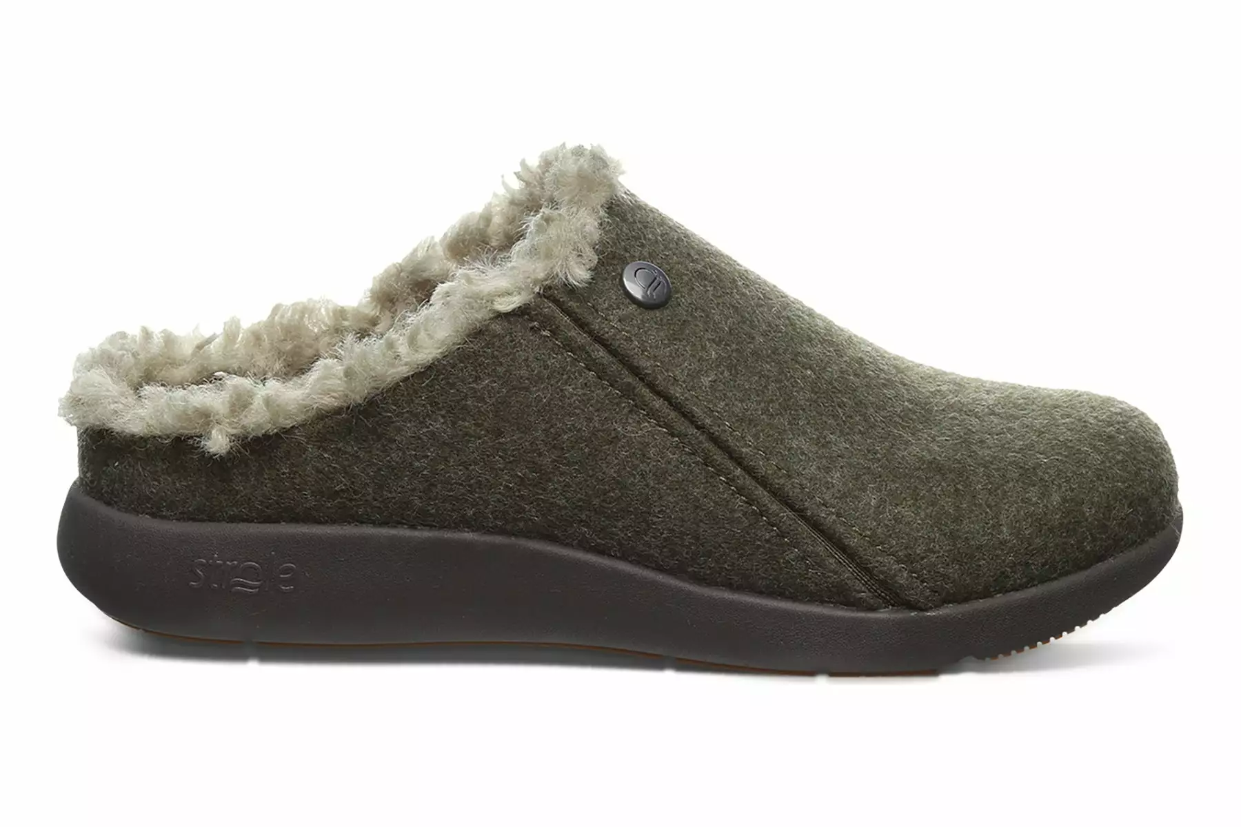 Strole Snug is a warm and cozy clog slipper. Prominent features include soft Melton wool uppers, faux fur lining and footbed and durable rubber outsole. Impact-reducing Poron inserts, Soft Stride support system and closed toe clog construction outlines these comfy slippers.