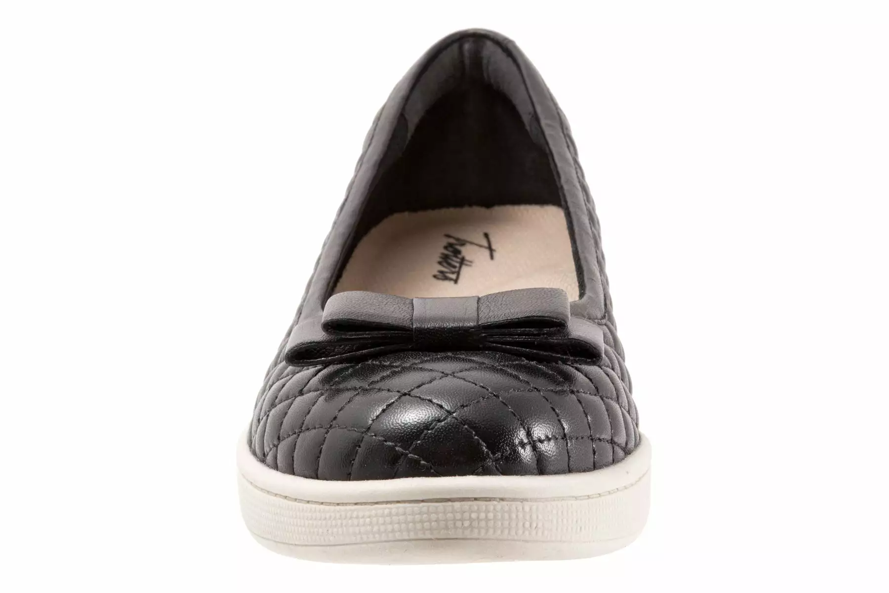 The Anna is a trendy quilted ballerina sneaker with an eye-catching bow. A cushioned removable footbed and rubber sole offer all-day support.