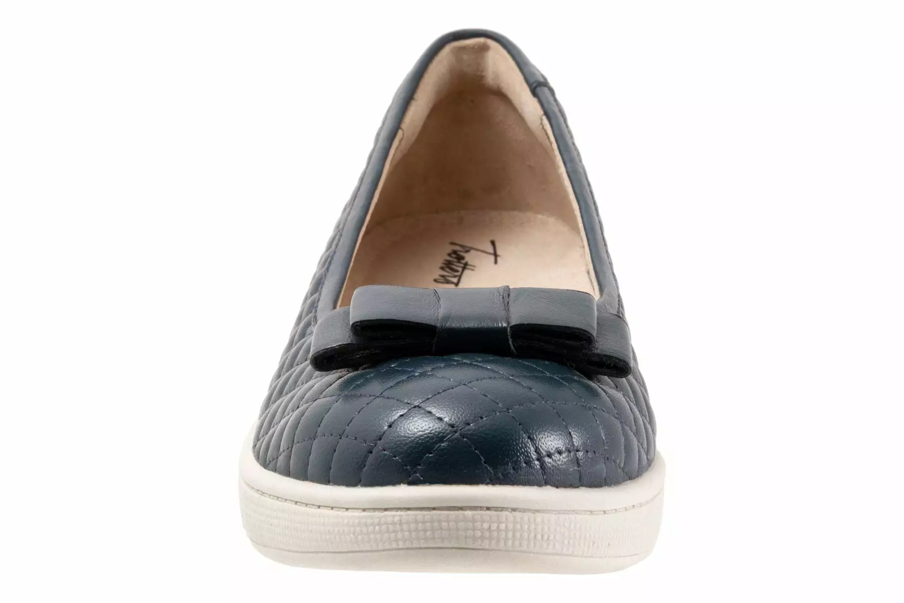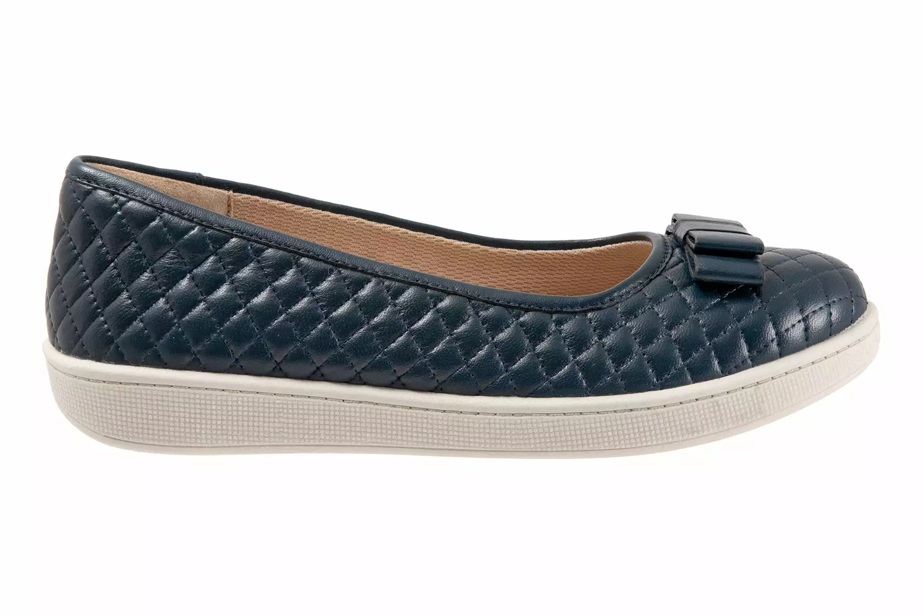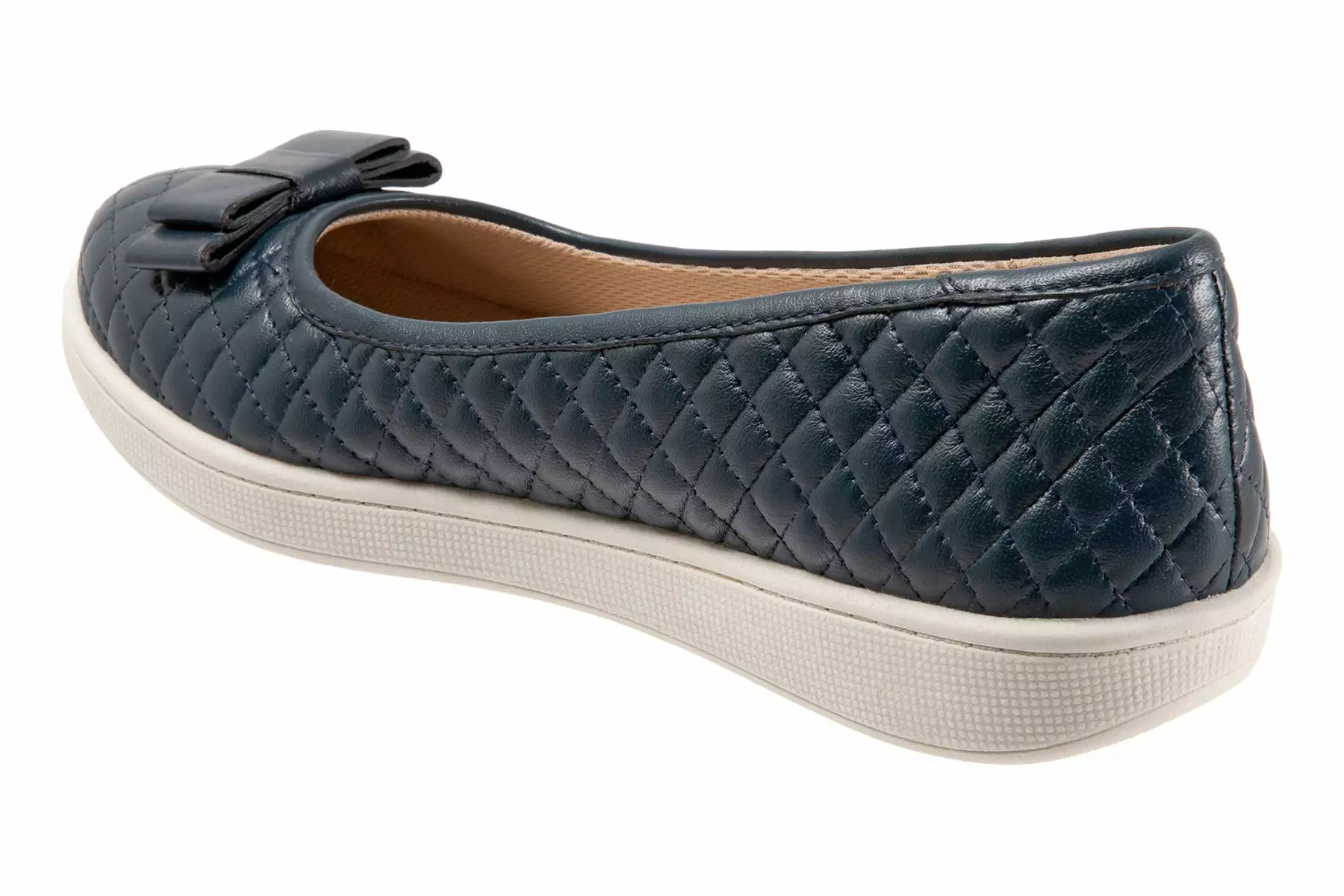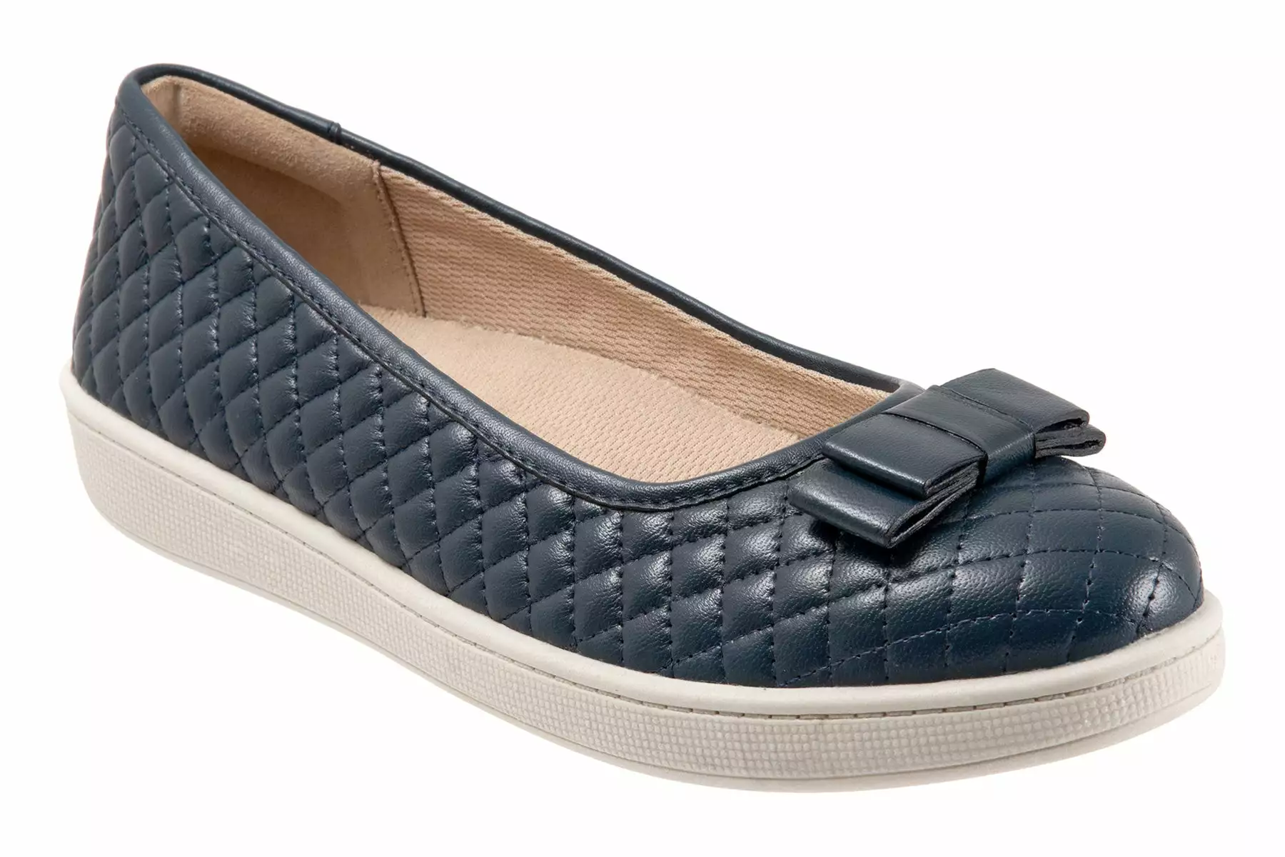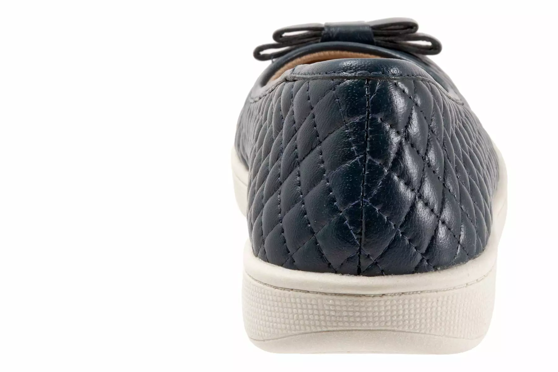 The Anna is a trendy quilted ballerina sneaker with an eye-catching bow. A cushioned removable footbed and rubber sole offer all-day support.