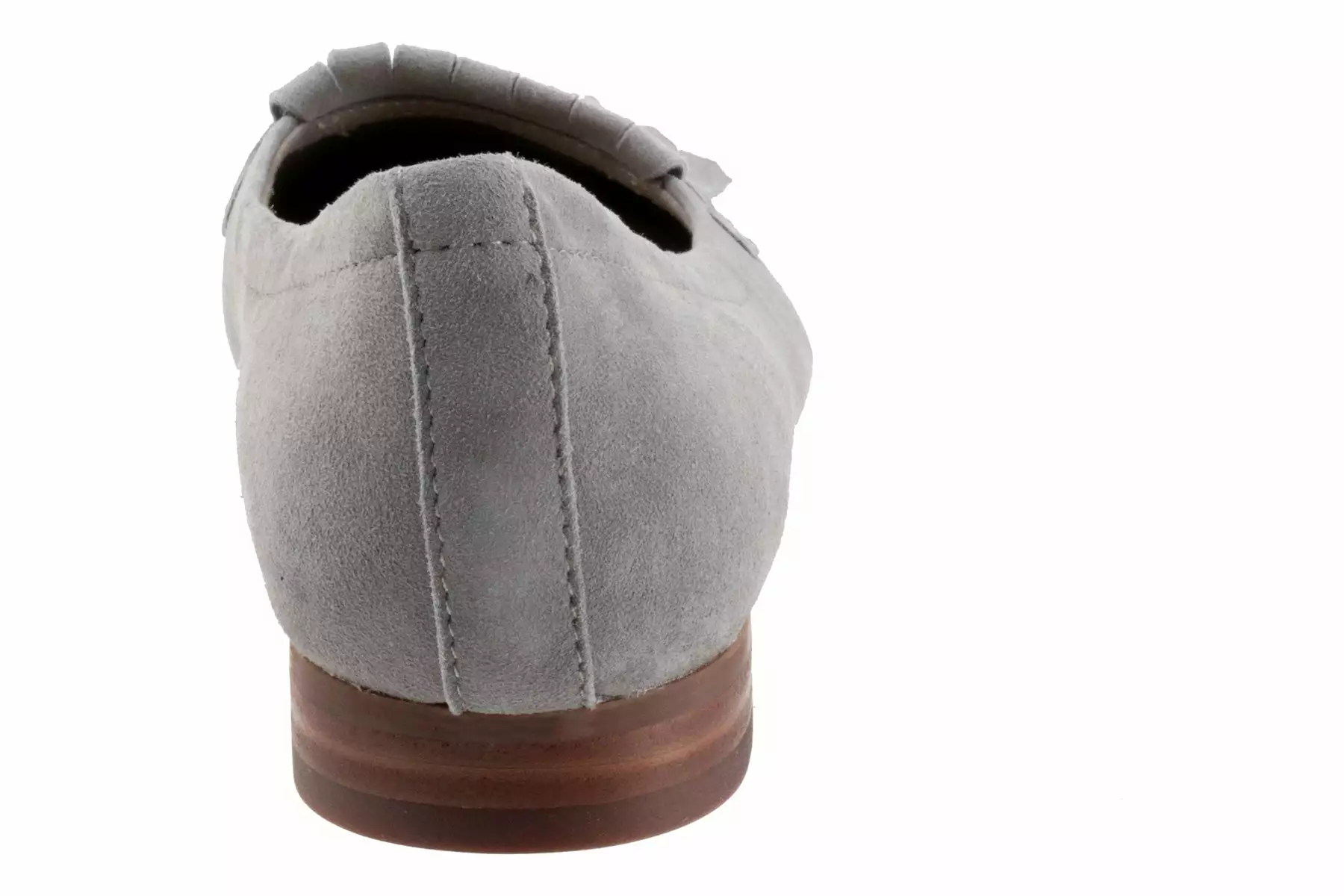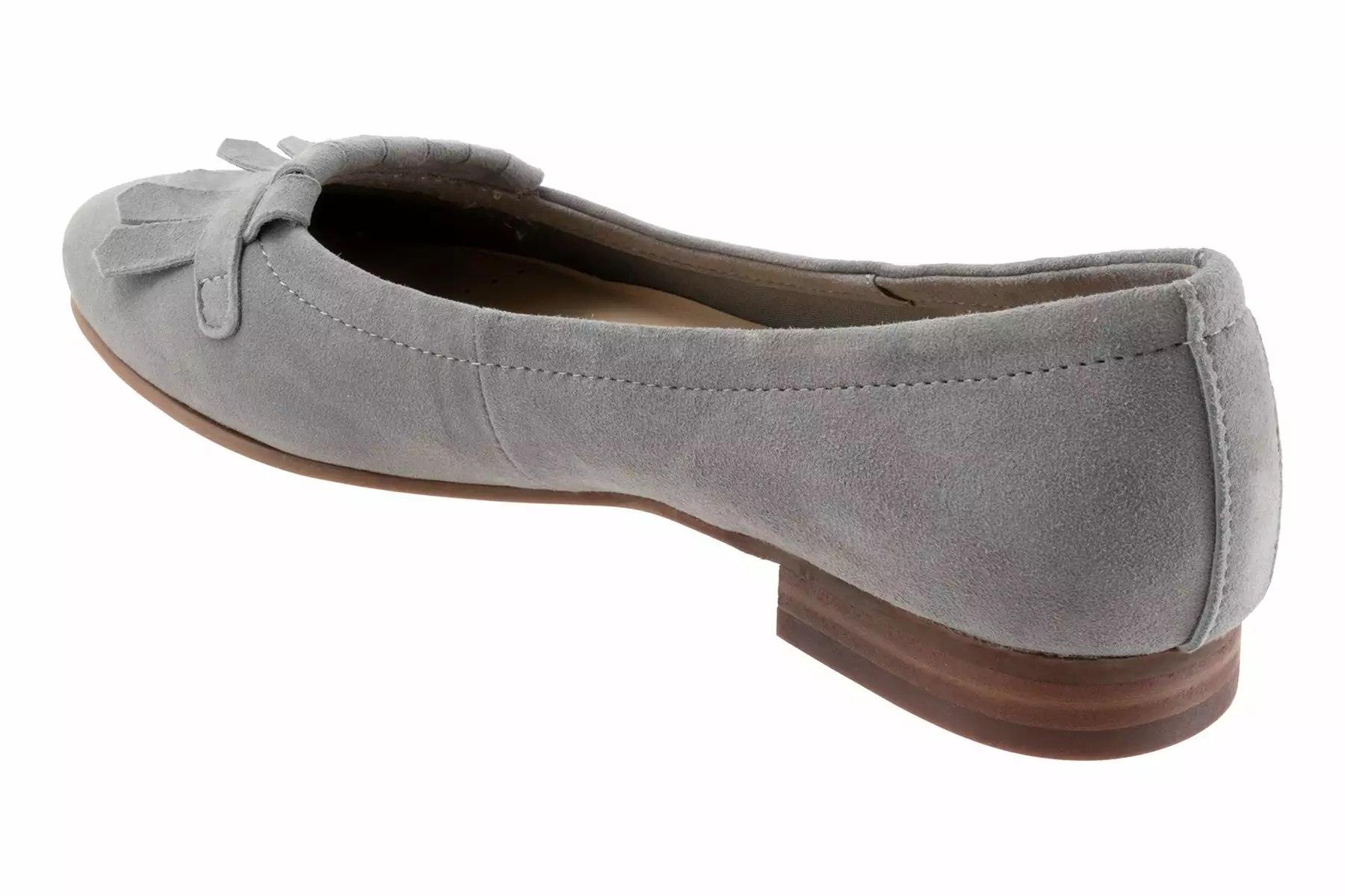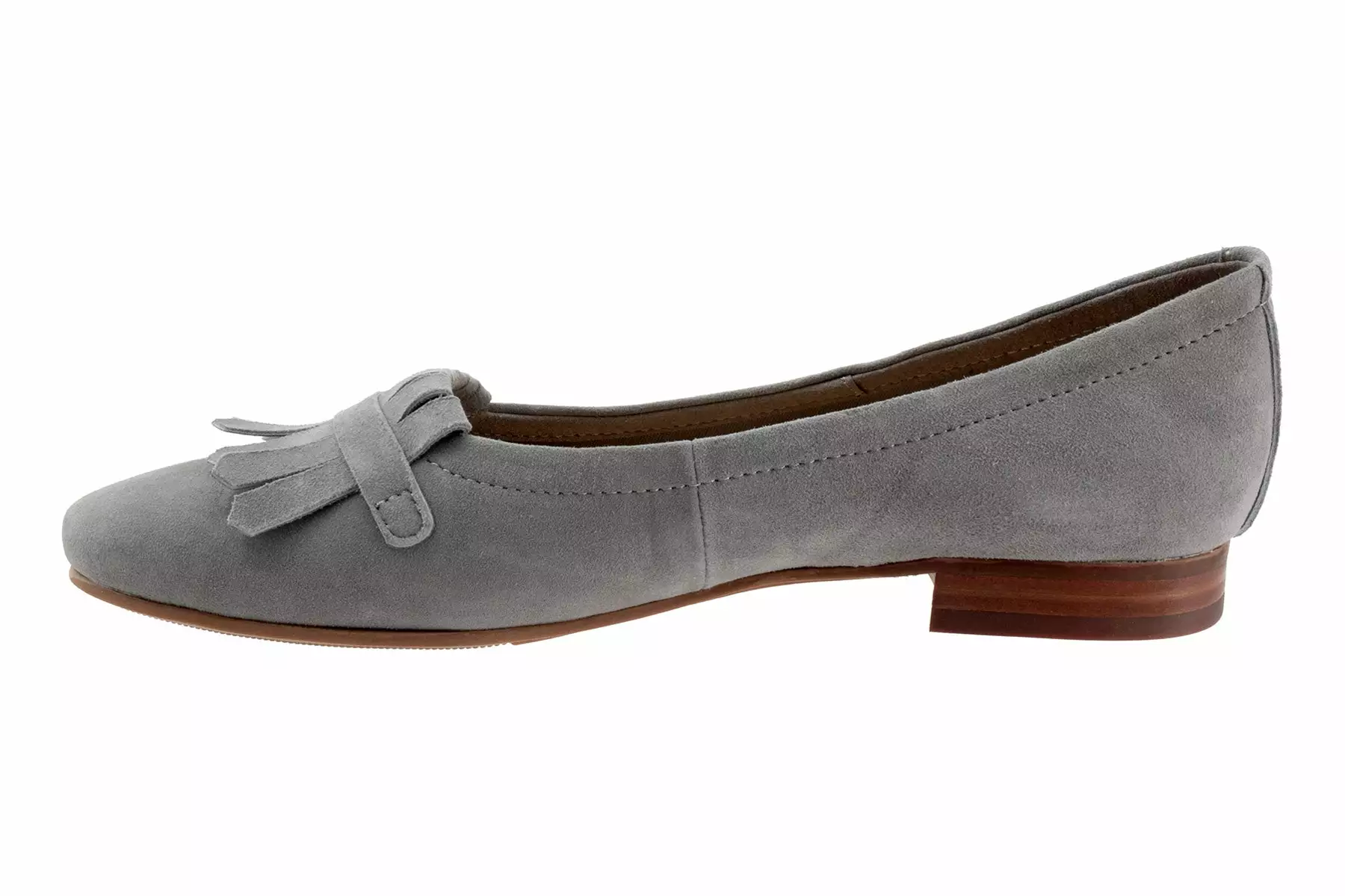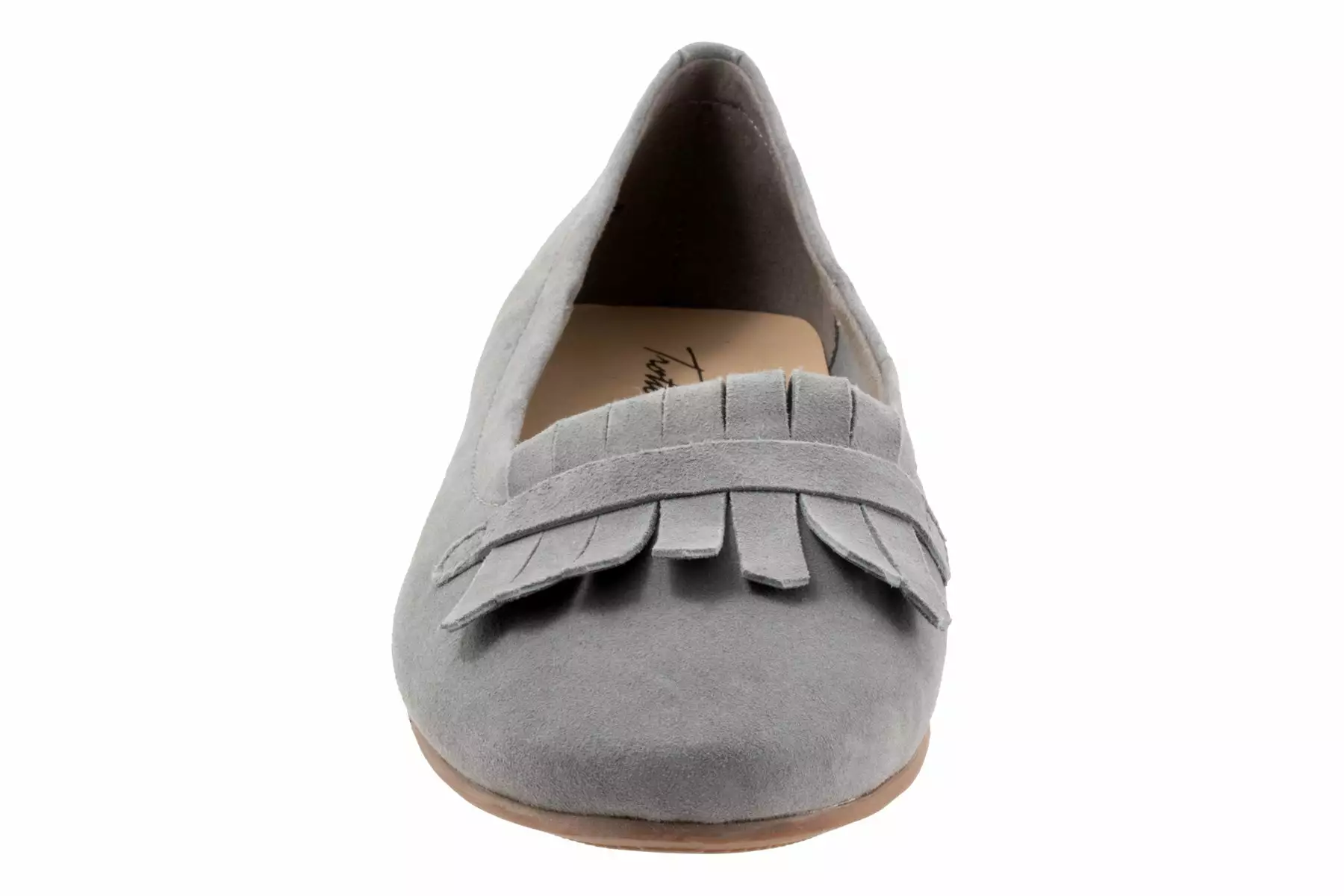 The Greyson flat has decorative leather strips on the toe for a tailored look.