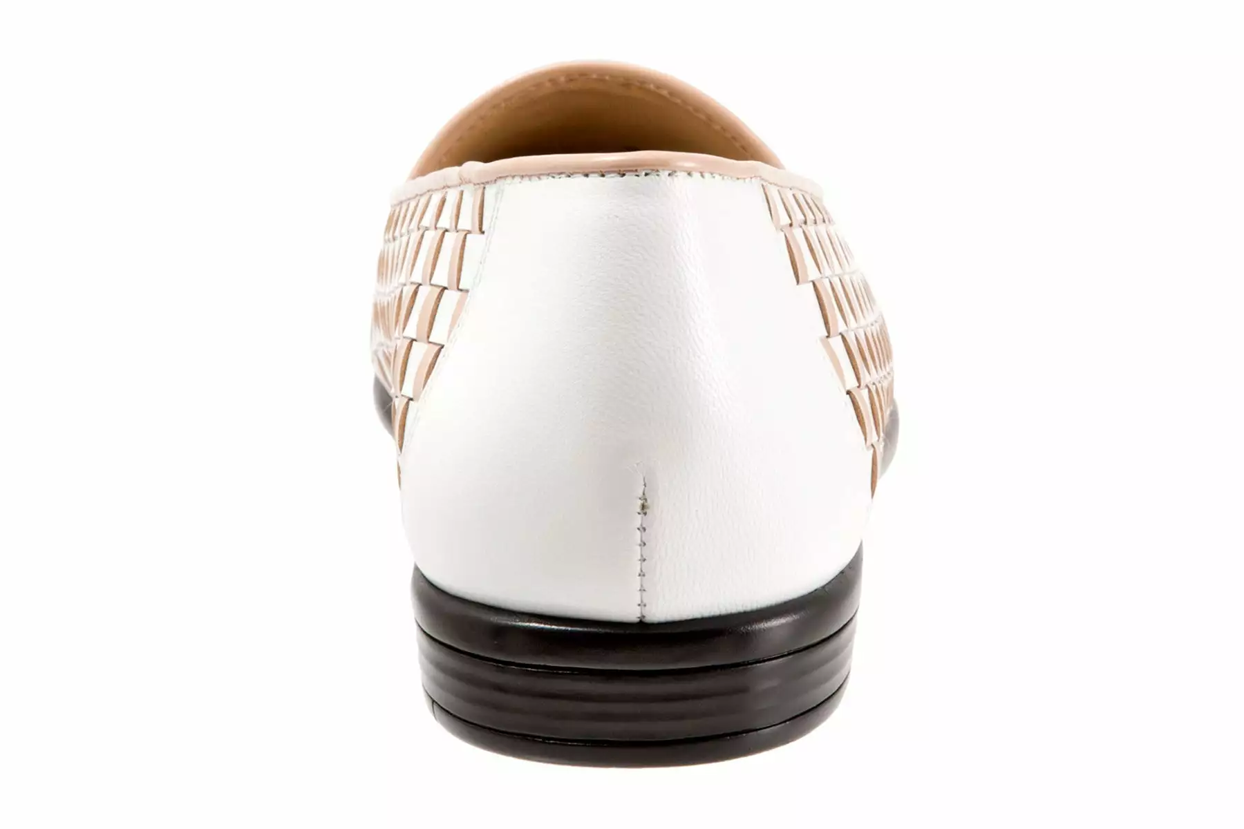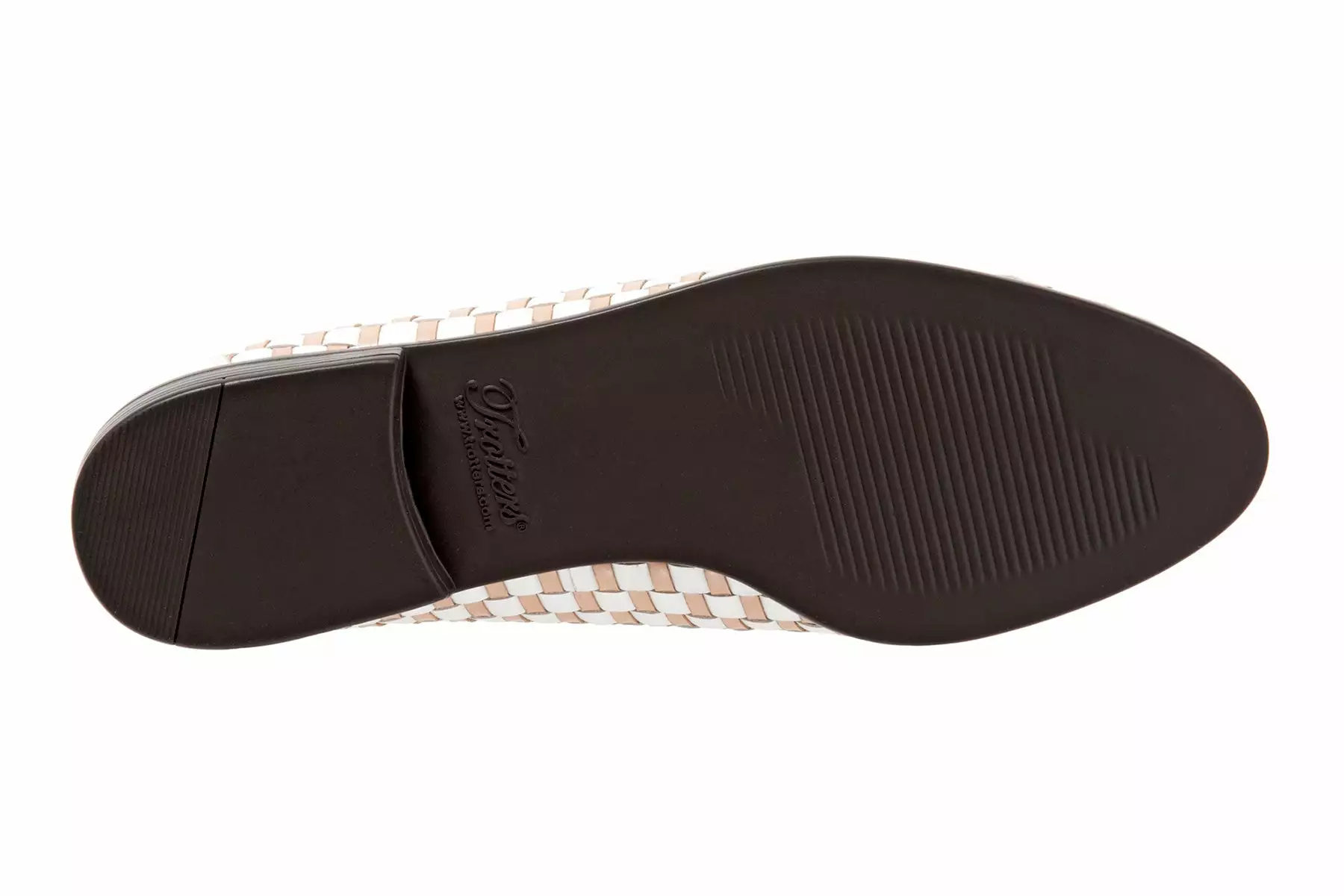 - Fully woven leather upper with a rounded toe.