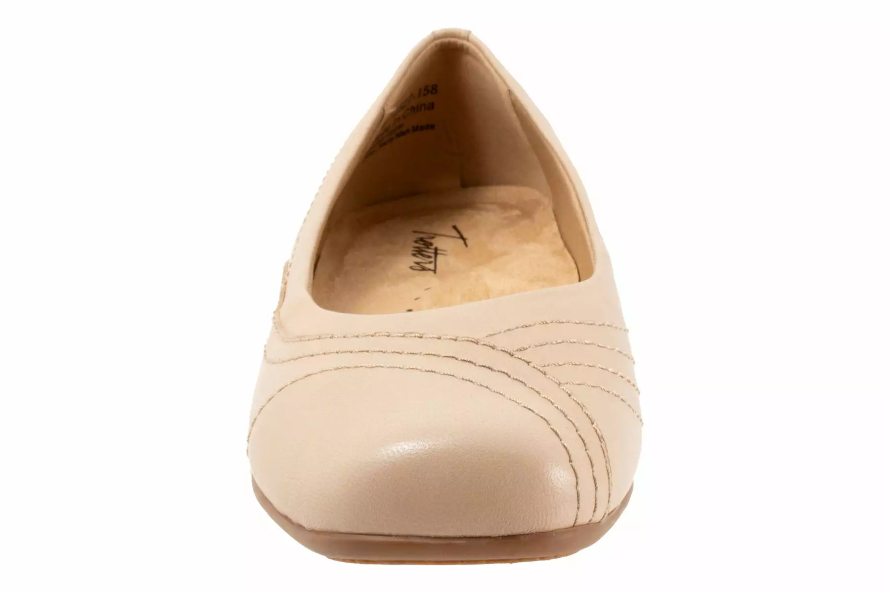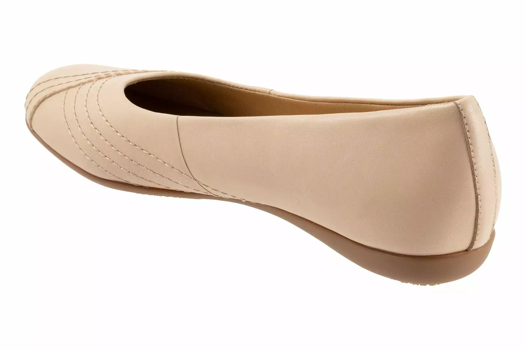 Wavy lines of stitching and overlapping leather give the Sasha flat a sense of whimsy. The removable footbed is cushioned and has arch support and the long-wearing sole is a Trotters best seller.