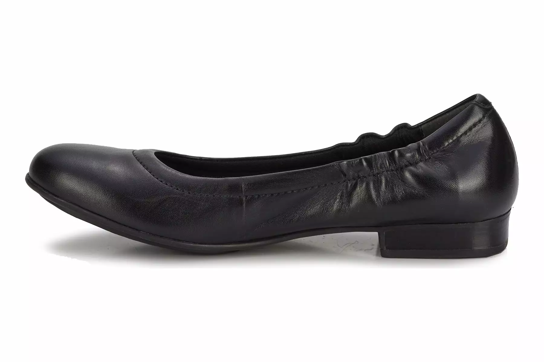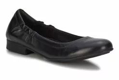 Walking Cradles Tess is a cushioned and roomy dress flat. These shoes have a soft leather upper, elasticized topline and removable dual-density foam insole. A roomy toe box, stacked block heel and slip on style creates a well-rounded and comfortable dress shoe.